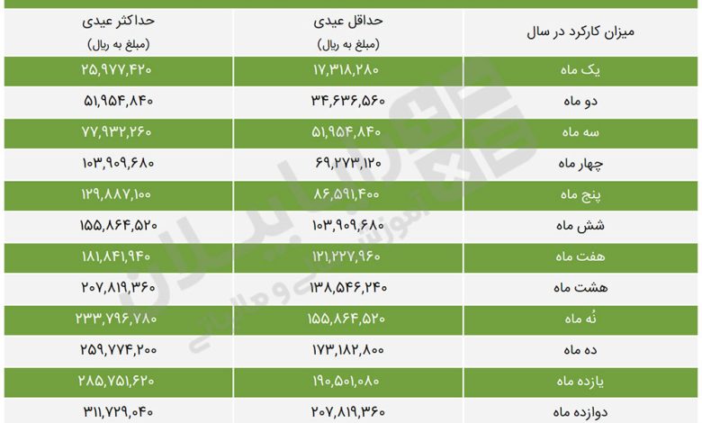 - حداقل عیدی ۱۴۰۵: ۲۰,۷۸۰,۰۰۰ تومان
